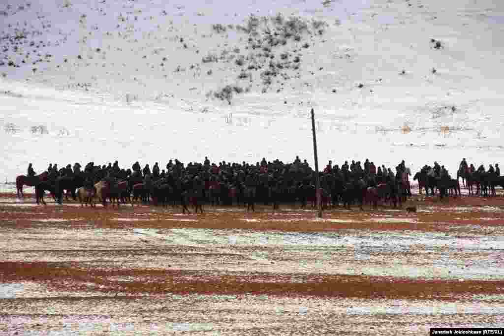 Жители алайского села Кабылан-Кол зимой традиционно устраивают скачки и козлодрание. Зимой у сельчан не так много работы, вот и забавляются местные мужчины конными играми.