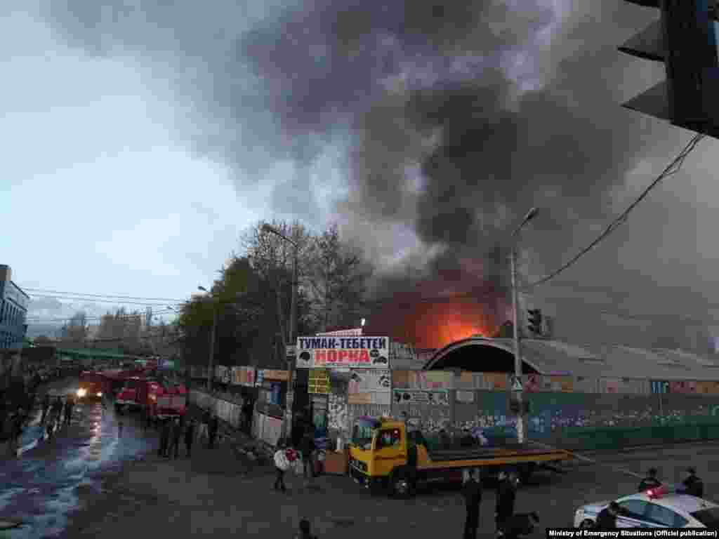На Ошском рынке в Бишкеке произошел пожар. Как сообщает пресс-служба МЧС, сообщение о возгорании поступило на пульт дежурного около 03:52 в пятницу, 13 апреля. Огонь охватил торговые ряды рынка «Берекет», что на пересечении улиц Кулиева и Киевской. Пожар потушен.