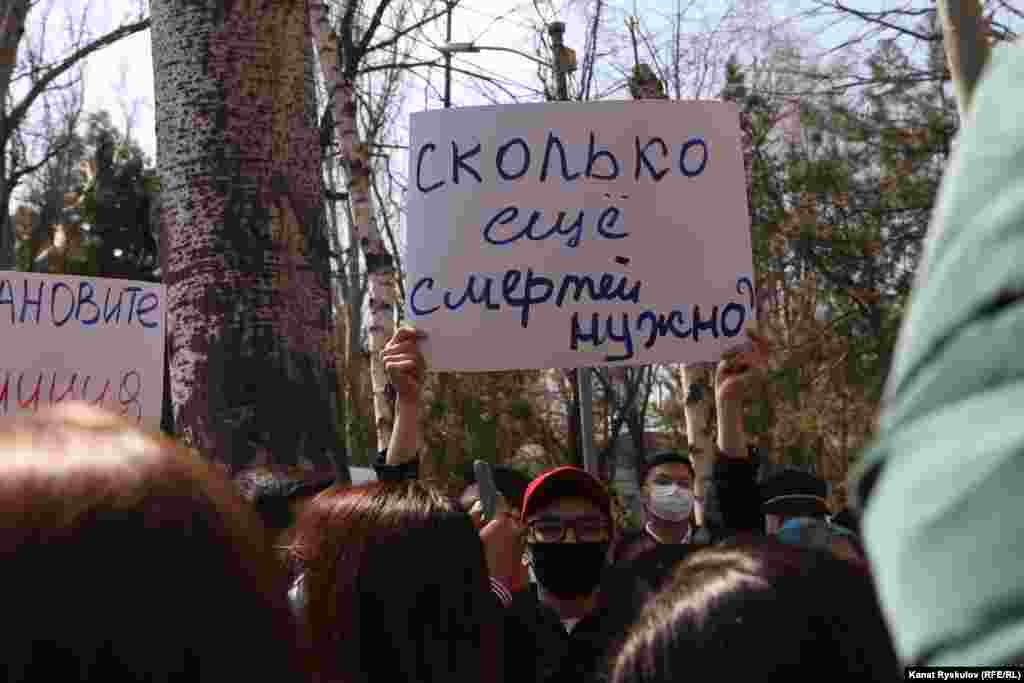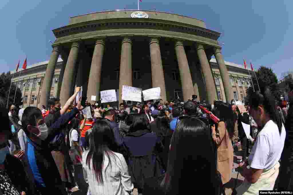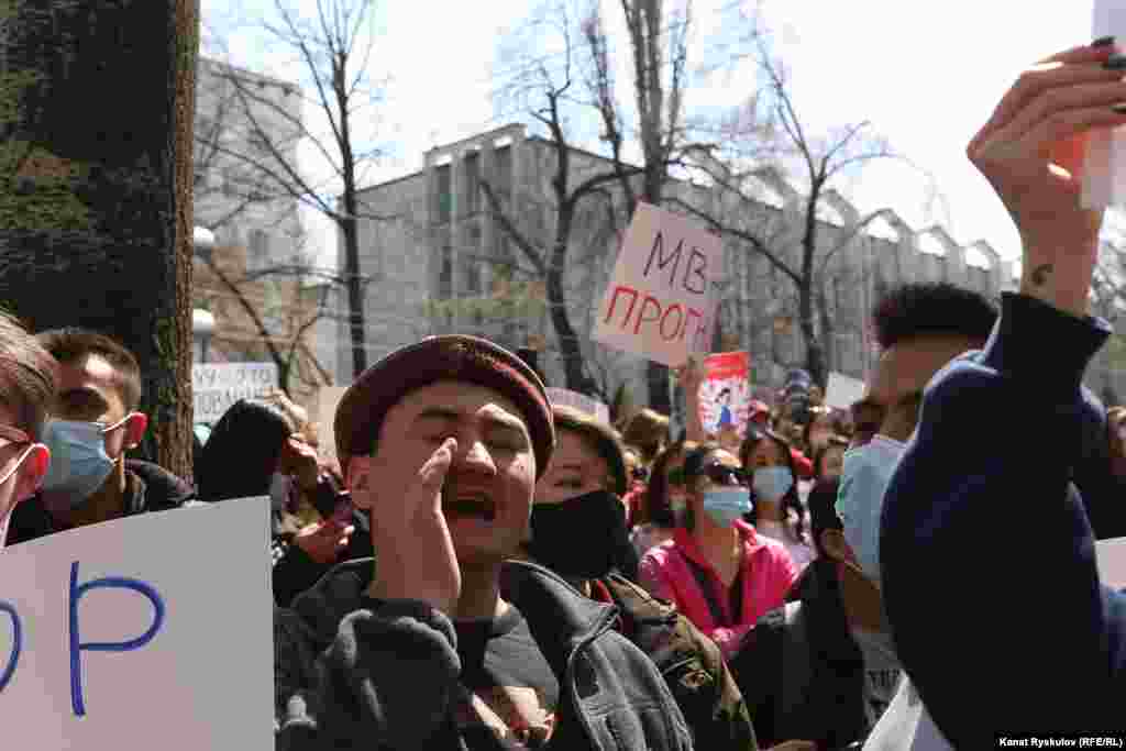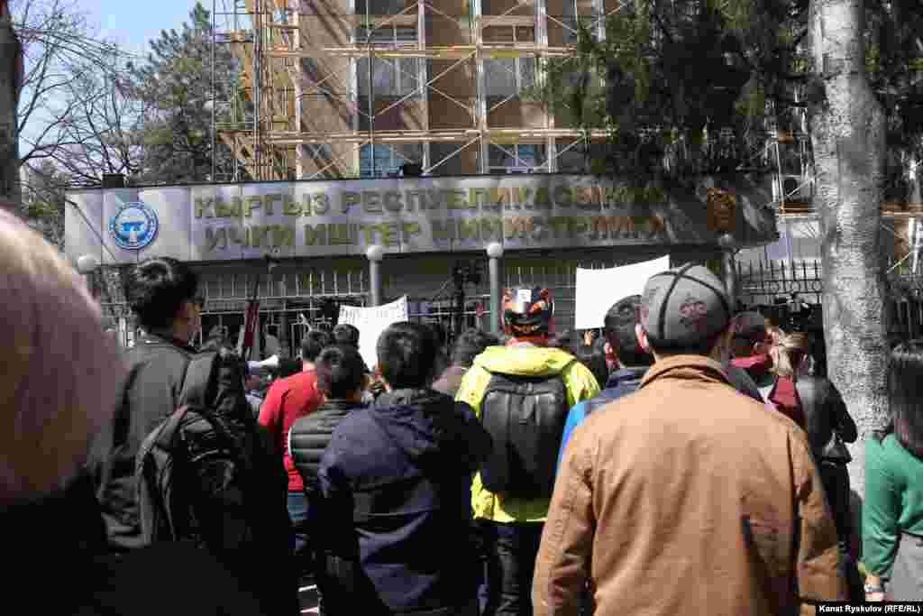 Активисты, блогеры, правозащитники и рядовые жители вышли на акцию протеста к зданию МВД в Бишкеке после похищения и убийства Айзады Канатбековой. Некоторые участники митинга потребовали отставки министра внутренних дел и его заместителей, а также главы ГУВД Бишкека.