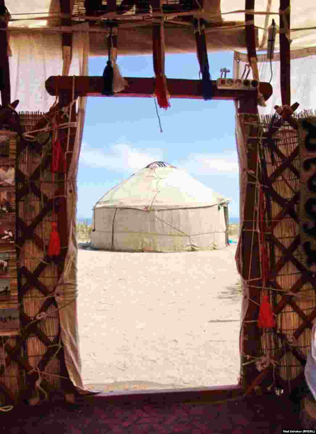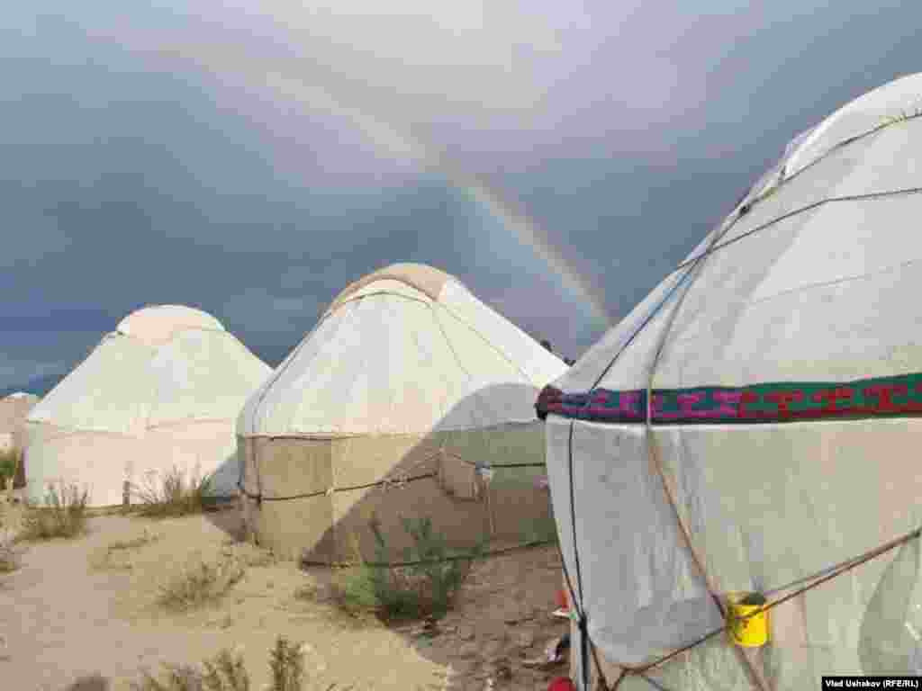 Кемпинг "Планетарное око" у горного озера Иссык-Куль.